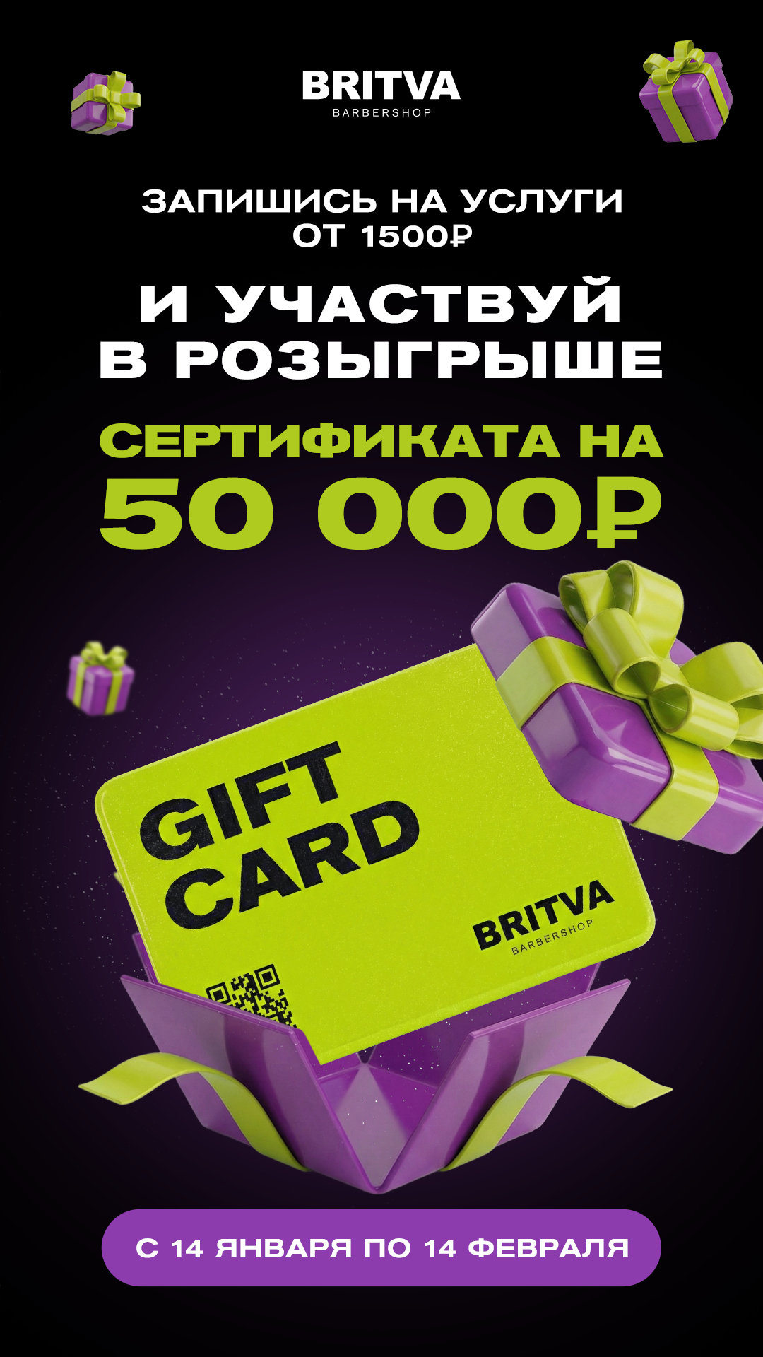 • во время очередного посещения сети “BRITVA” возьми у администратора бесплатный сертификат на 500 рублей (Омск и Воронеж - 400 рублей);